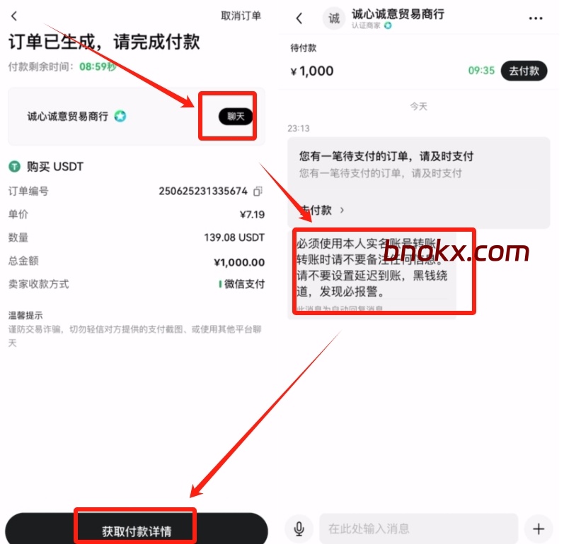 这一步必须做,不点的话系统不会通知商家放币