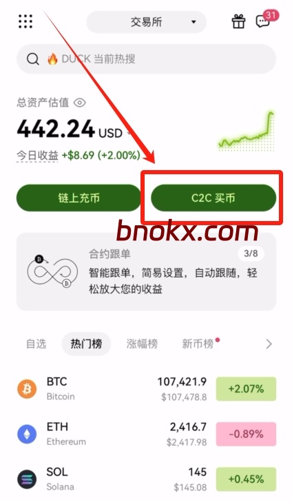在 OKX 里,买USDT通常走法币交易区,也就是常说的C2C