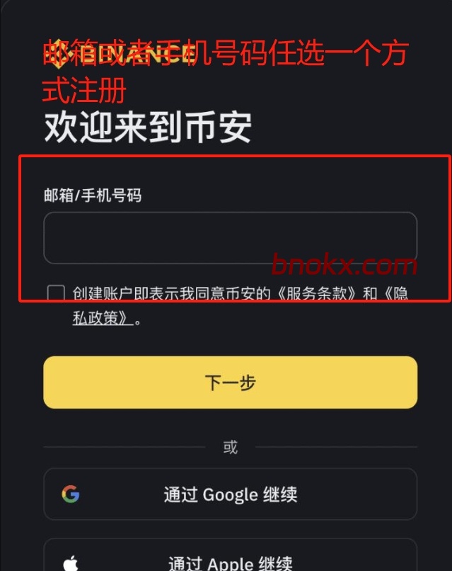 币安注册流程开始